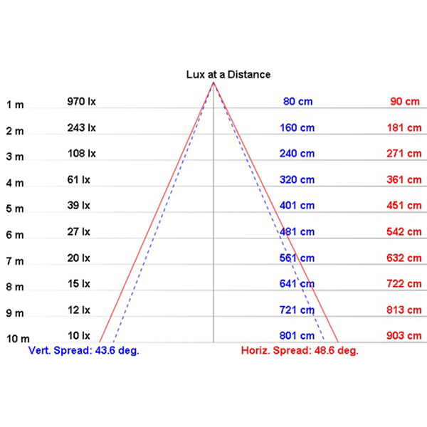 ・特殊設計の反射構造により集光性を高めて配光角度を50度にし、直下照度を向上させています。