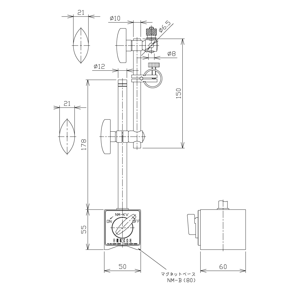 主にダイヤルゲージ/インジケーターなどで計測する際に、計測器具をマグネットで保持し定盤に固定するための治具として使用されます。