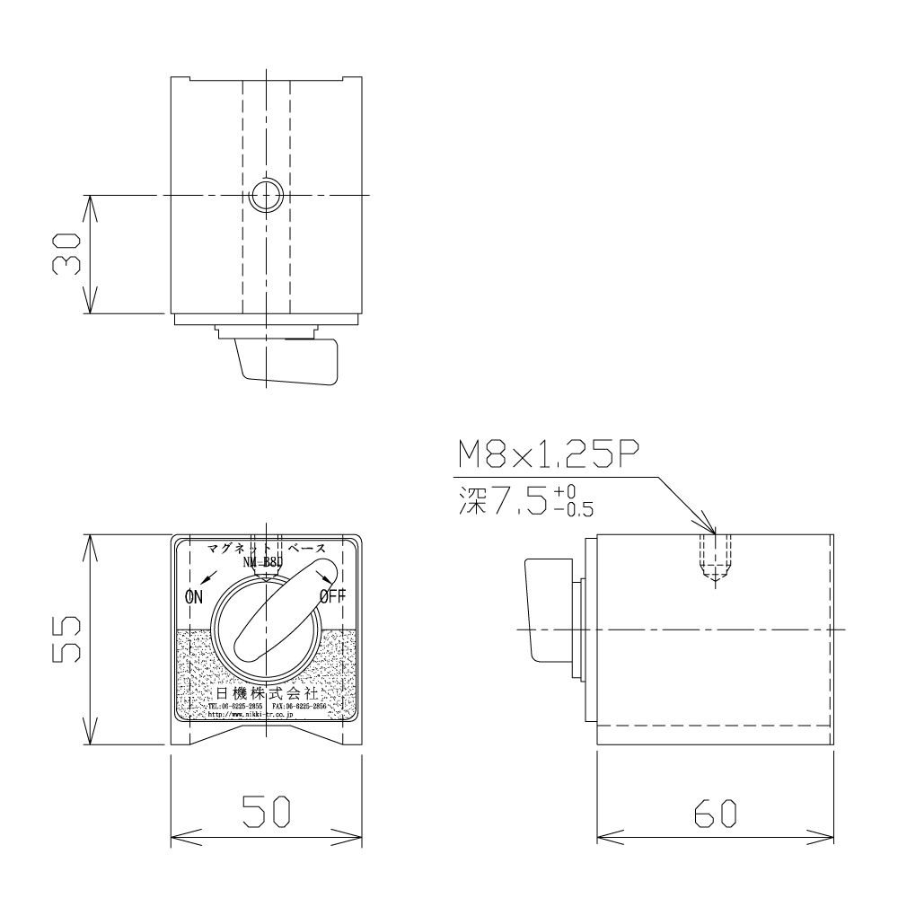 磁力がON/OFF可能なマグネットベースです。吸着面は、V型構造になっており、パイプや丸棒にも吸着可能です。