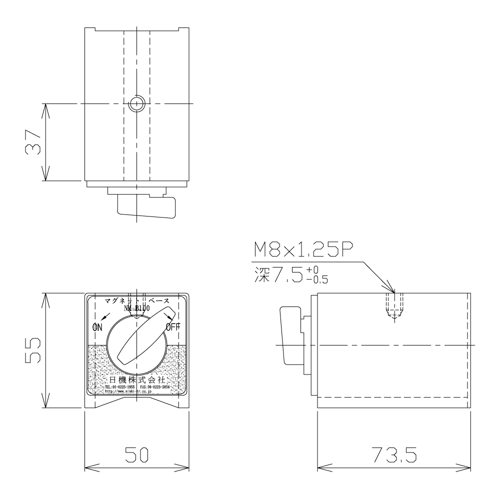 磁力がON/OFF可能なマグネットベースです。吸着面は、V型構造になっており、パイプや丸棒にも吸着可能です。
