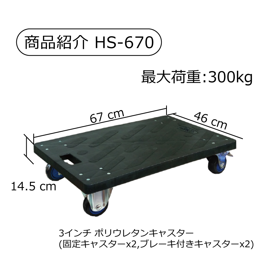 表面は滑り止めで、耐荷重300kgの平台車です。