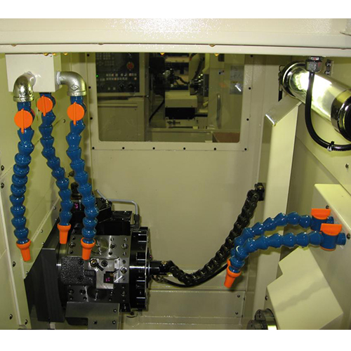 金属加工機械のクーラント液用のホースとして、及びその他の流体のホースとして使用でき、パーツの組み合わせにより角度、長さ、口径を自由自在に組替する事が出来ます。材質はポリアセタール樹脂(POM)を使用しており、耐薬品性、耐衝撃性、耐熱性に優れています。