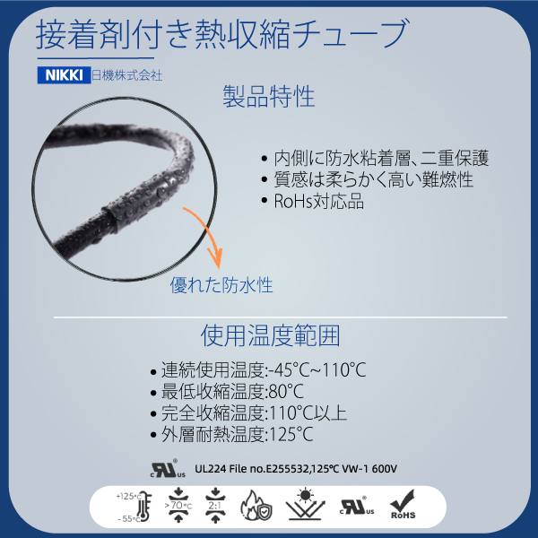 ・内側に接着剤がついた熱収縮チューブで、異物の混入を防ぎます。