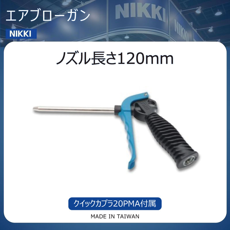流量はグリップで調節することができる高流量タイプのエアブローガンです。